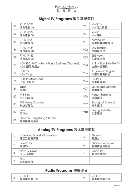 酒店不承擔任何放置於房間保險箱或酒店物業範圍內的金錢、珠寶或其他貴重物品損失之責任。退房前,請查看保險箱並讓保險箱門保持開啟。