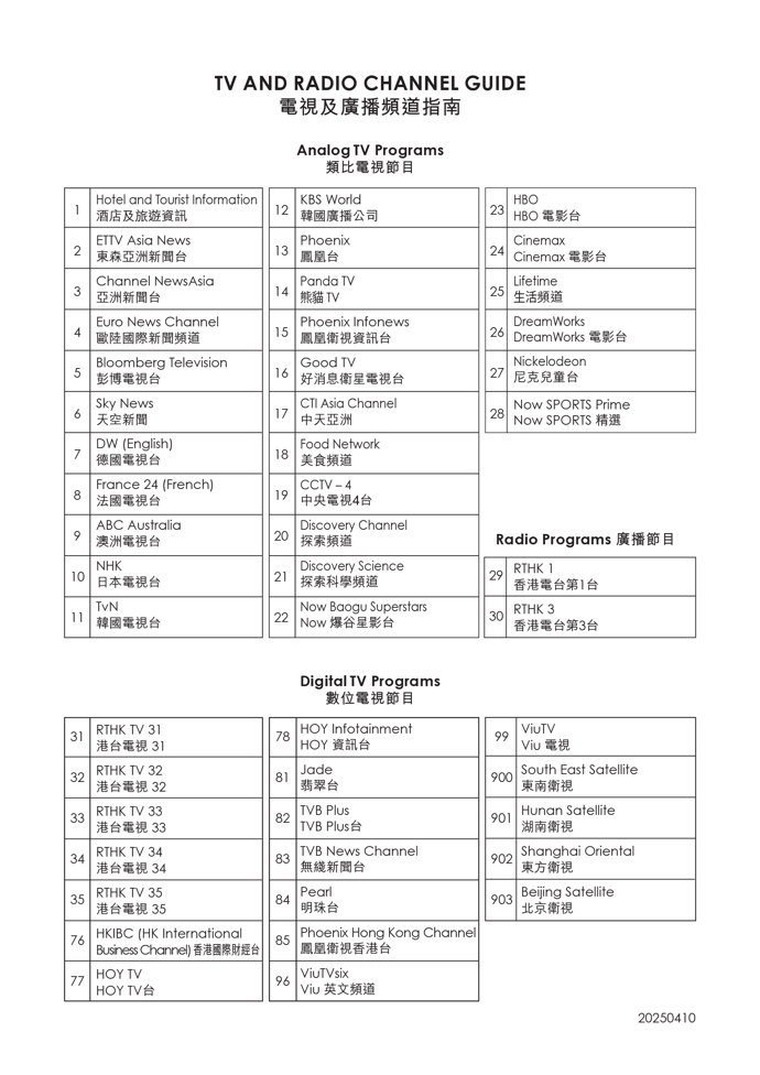 所有客房及公眾地方均設有無線上網服務,請參閱本指南內的「酒店無線上網使用手冊」。如需協助,請與服務中心聯絡。